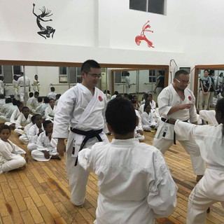 私が指導したのはKANANOさんが指導するKANANO道場で1時間を3回、7〜8才と9〜10才と11才から上の3グループ。 日本が支援しているフクザワ学校の中学2年生に2時間、形の演武とピンアン二段の指導。 ハッサンスタジアムでは300人を超える大人から子供までの空手愛好家に2時間。 追い突きや払い受けの基本的動作。 ミットを使っての撃ち込みのやり方などを指導してきました。